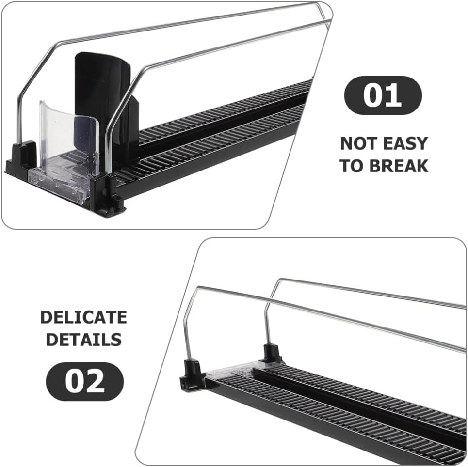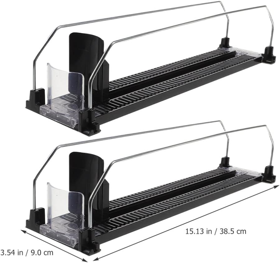 DescriptionAre you looking for Shelf Automatic Replenishment Pusher for your store? Made of plastic and steel materials for a longtime and use. It has a simple design, but very practical in use, giving you a . It is sturdy, not easy to break. Fine workmanship and creative appearance ensure its popularity and practicality.Features-- Color: Black--Material:Plastic, steel-- Size: 38.50X9.00X8.50cm/15.13X3.54X3.34in Package Including2 × drink pusher