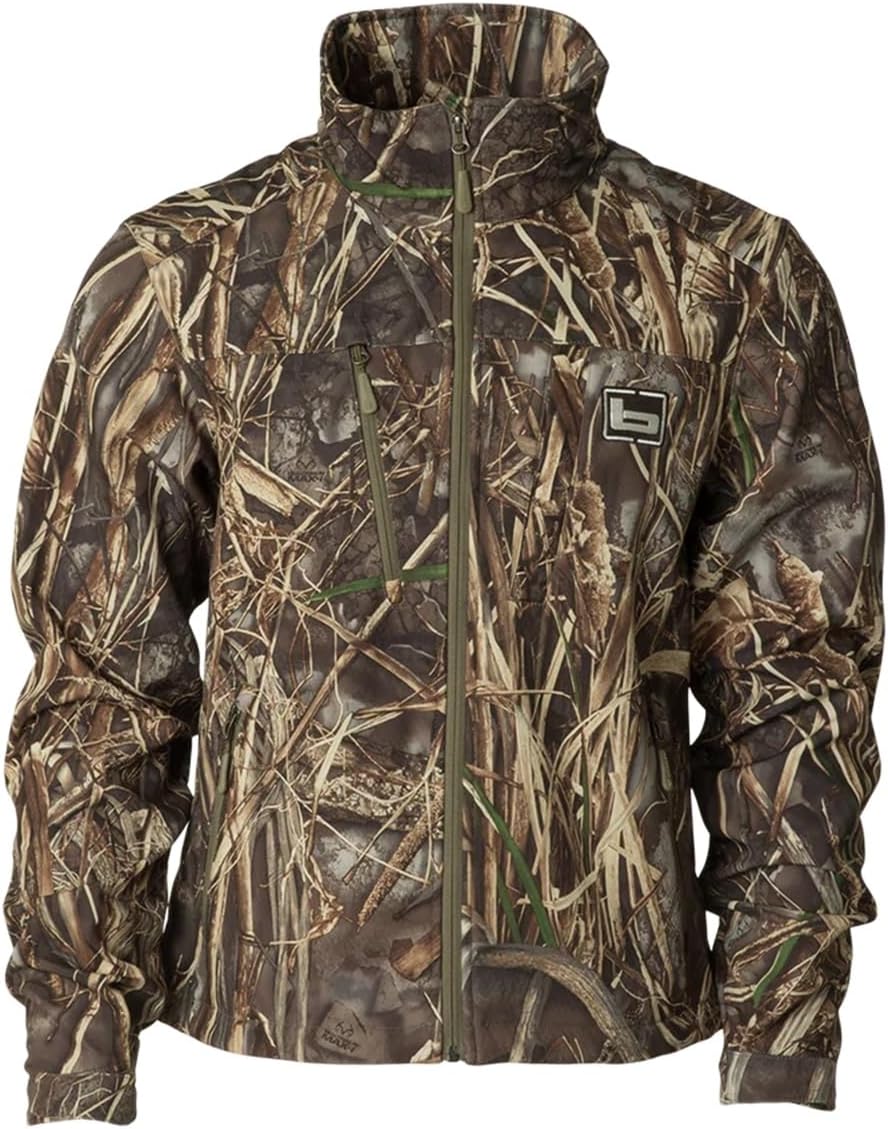 Midweight, wind-resistant soft-shell exterior, lined with a fleece warmth grid. Water-resistant DWR treatment. Neck-protecting mock collar. Twin YKK zippered hand pockets, chest pocket, and magnetic chest pocket with storm flap protection. YKK center-front zip. Adjustable cuffs for warmth retention.