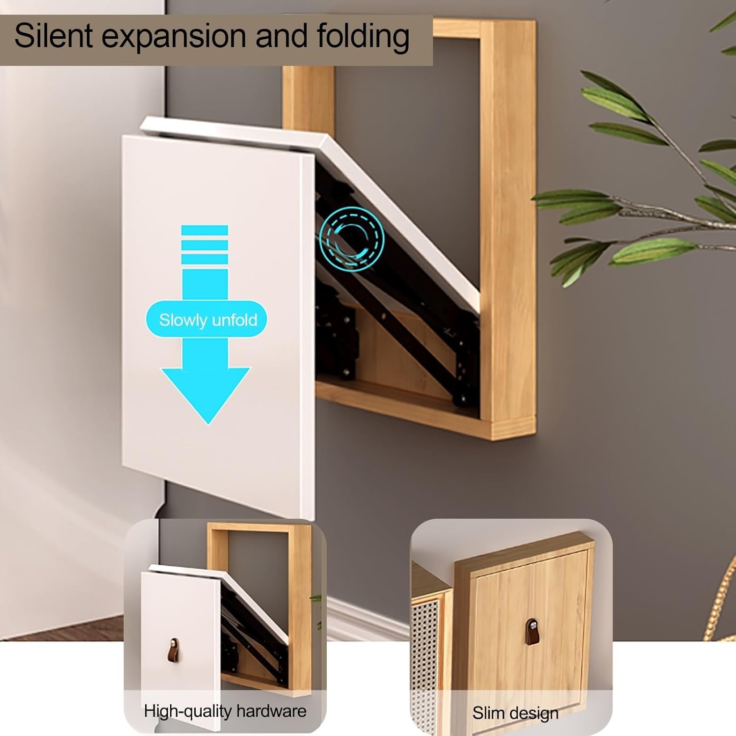 Wall-Mounted Folding Shoe Stool – Solid Wood Space-Saving Invisible Bench with Hidden Design, Wall Seat for Entryway Bathroom(H)