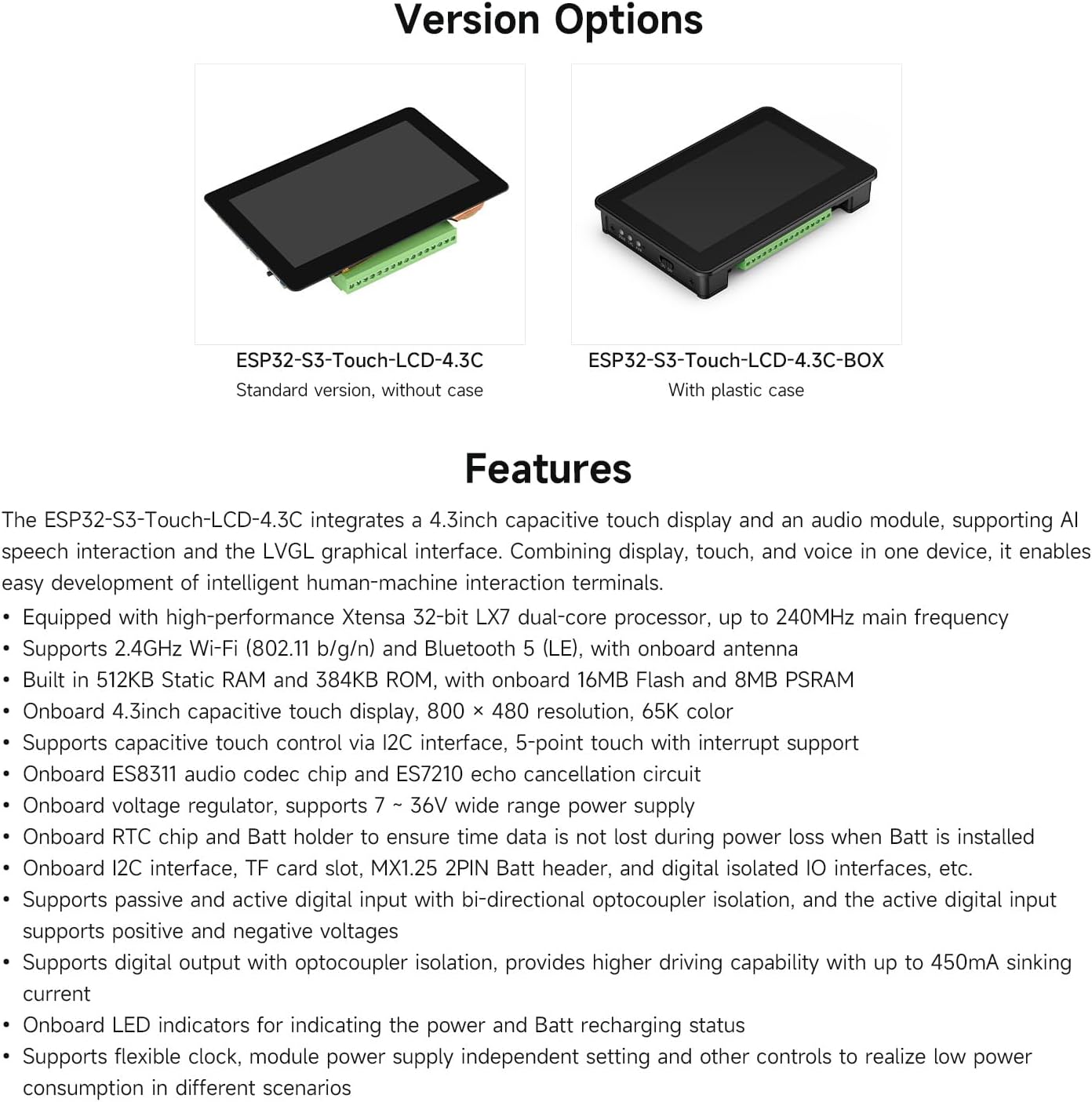 | Mfr Part Number | ESP32-S3-Touch-LCD-4.3C-BOX |